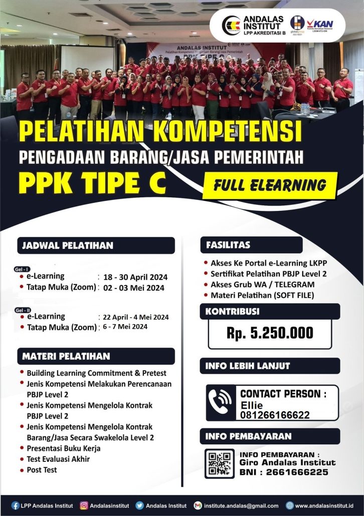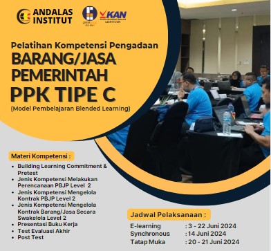 Jadwal Pelatihan Pengadaan Barang/Jasa Pemerintah (PBJP) Level 1 – Periode Juni dan Juli 2024 Dalam rangka pemenuhan sertifikasi dan kompetensi pejabat pengadaan barang jasa dijajaran instansi pemerintah, BUMN,BUMD, Lembaga, Badan Pusat, OPD, SKPD K/L/D/I Kabupaten Kota SeIndonesia. LPP Andalas Institut Lembaga Terakreditasi B LKPP, membuka kelas Pelatihan dan Uji Kompetensi PBJP Level 1. Materi Pelatihan: […]