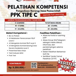 Pelatihan Kompetensi Pengadaan Barang/Jasa Pemerintah PPK TIPE C April 2026 (Full Learning)