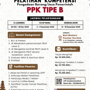 Pelatihan Komptensi Pengadaan Barang/Jasa Pemerintah PPK TIPE C (Metode Full Learning)