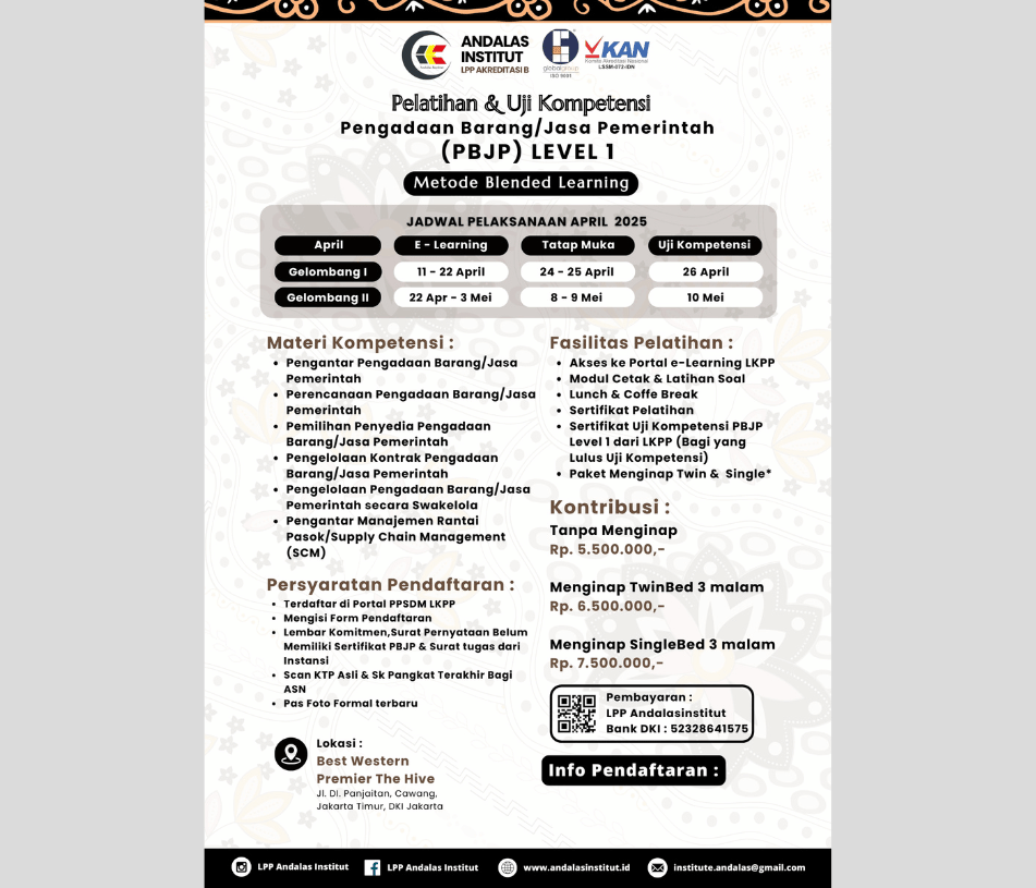 Pelatihan Kompetensi & Ujian Sertifikasi PBJP Level 1 (April 2025)