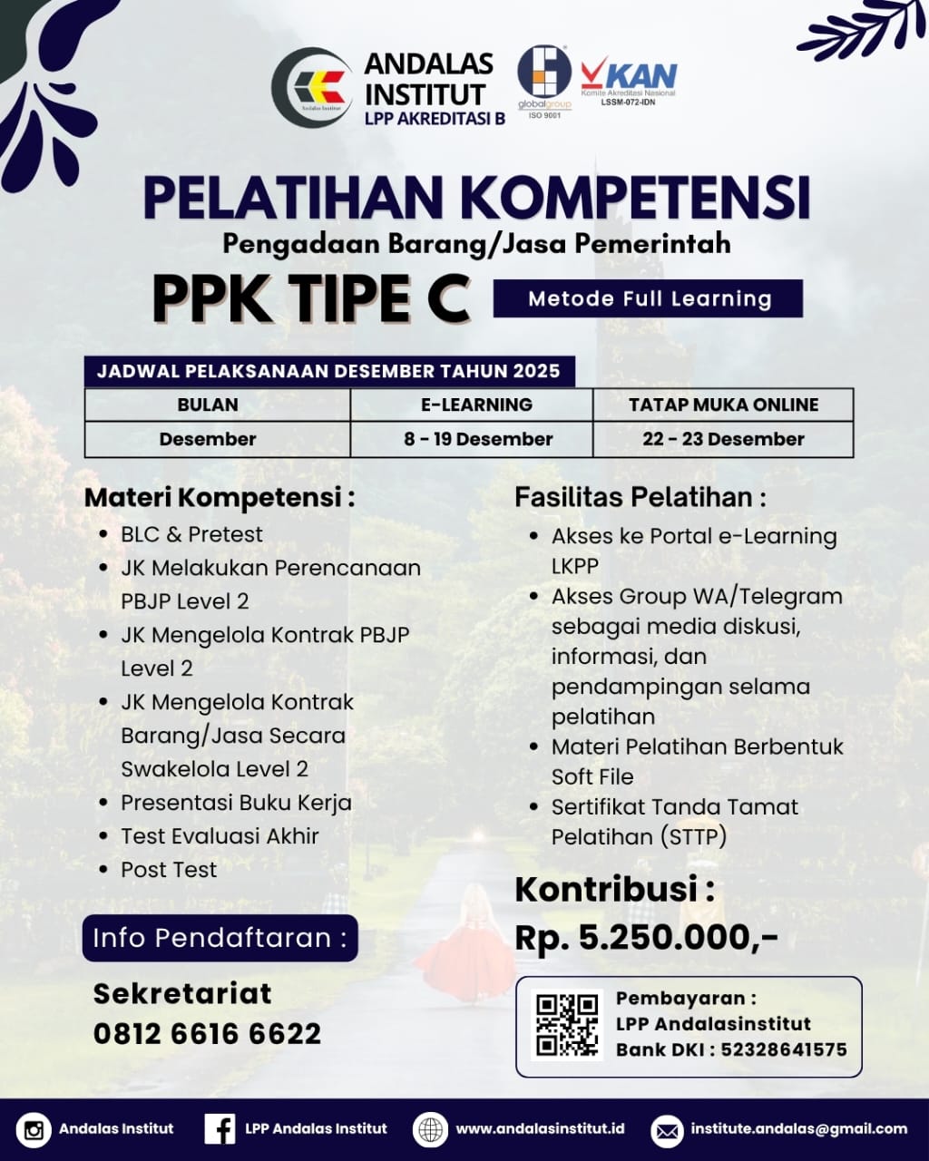 Pelatihan Komptensi Pengadaan Barang/Jasa Pemerintah PPK TIPE C (Metode Full Learning Desember)